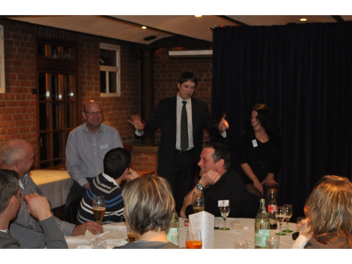 November 2010 - Wiemacht er das bloß? Eine Frage, die sich an diesem Abend viele unserer Gäste stellten. Doch der Magier Dirk Wiedmann versteht sein Handwerk und ließ sich im wahrsten Sinne des Wortes nicht hinter die Karten schauen. Stattdessen faszinierte er sein Publikum mit immer neuen Raffinessen, bezog es mit ein, las seine Gedanken und ließ es staunen. Ganz nebenbei durfte aber auch ein wenig geschlemmt werden, denn es gab ein Schweizer Käse Fondue. Dabei wurde dessen Tradition sehr ernst genommen. Es gab nicht nur vor dem Essen das obligatorische Kirschwasser, sondern auch für jeden, der ein Stück Brot im Fondue verlor. „Aufmerksamen Asterix-Lesern ist dieses Gebaren nicht unbekannt“, meinte schmunzelnd Niederlassungsleiterin Petra Bernhart.