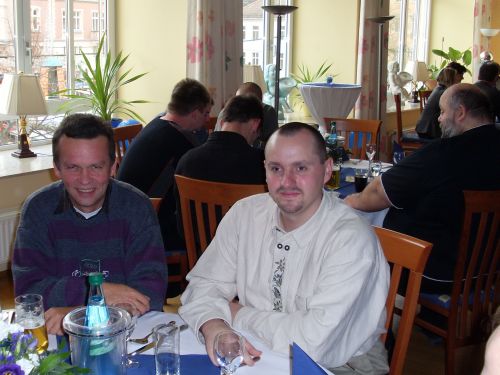 Zum gemeinsamen Mittagessen ging es zurück ins Café Centra, wo nicht nur ein leckeres Buffet, sondern auch der Weißenfelser Schusterjunge - ein Wahrzeichen der Stadt - die Gäste empfing und mit seinen launigen Geschichten unterhielt.
