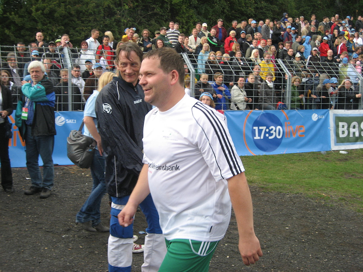 Gekickt wurde für einen guten Zweck. Die Per-Mertesacker-Stiftung hatte zum Benefiz-Spiel geladen und über 10.000 Zuschauer verfolgten ein Fußballspiel, das unterhaltsamer kaum sein konnte. Wenn Profis wie Lukas Podolski, Phillip Lahm, Piotr Trochowski oder Nationaltorhüter Robert Enke gemeinsam mit Prominenten wie Oliver Pocher, den TV-Moderatoren Elton und Gerhard Delling oder den Jungs der Band Sportfreunde Stiller gegen den Ball treten, ist viel Spaß vorprogrammiert. Und den hatten die Mitarbeiterinnen und Mitarbeiter an diesem Tag. Für das leibliche Wohl wurde ausreichend gesorgt und bei einem Endergebnis von 11:8 einschließlich Elfmeterschiessen gab es Tore satt. Nach dem Spiel konnten Autogramme gesammelt werden, so dass beim Verlassen des Fußball-Stadions kein Wunsch mehr offen geblieben war.
