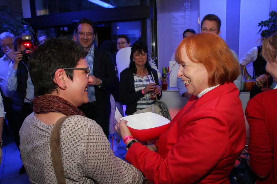 Nach den ersten Rhythmen der Band verloste Geschäftsführerin und Honorarkonsulin Ingrid Hofmann persönlich die Eintrittskarten zum Handballspiel HC Erlangen gegen TUSEM Essen am 16.05.16, bei dem der HC Erlangen einen neuen Zuschauer-Weltrekord für ein Zweitliga-Handballspiel aufstellen will. Ein weiterer Preis ein kleines Bierfaß, das zur angehenden Grillsaison einen dankbaren Abnehmer fand.