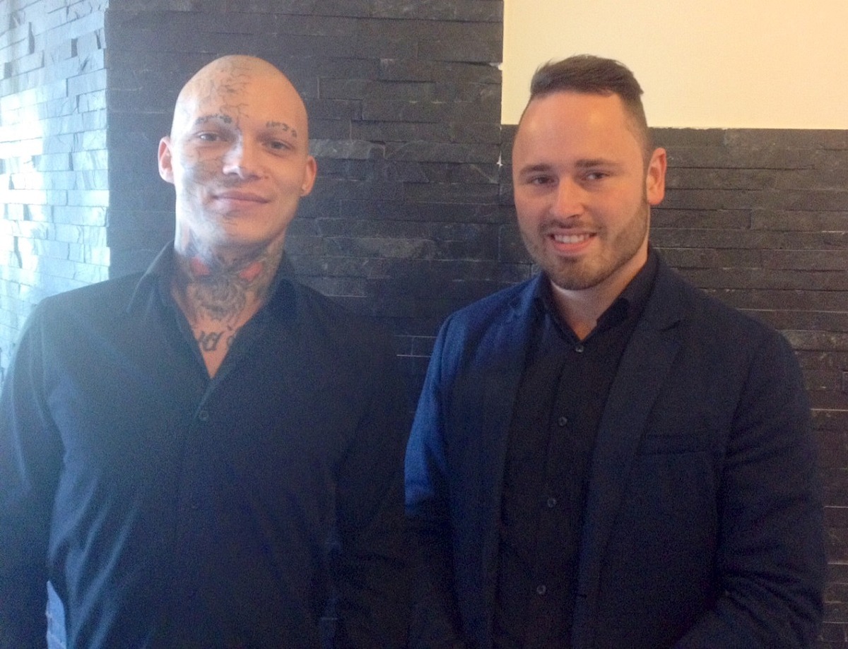 „Ganz recht“, stimmt er zu. „Ich finde den Hype um meine Person zwar sehr aufregend und suche ganz bewusst diese Polarität. Es gefällt mir, im Rampenlicht zu stehen. Aber ich brauche auch die finanzielle Sicherheit, um mich wohl zu fühlen. Während der Woche lebe ich also meinen Alltag und am Wochenende bin ich ein anderer! Das drückt sich auch in meinem Gesicht aus: Die rechte Seite ist tätowiert und die linke Seite ist sozusagen unversehrt geblieben“, schmunzelt er.