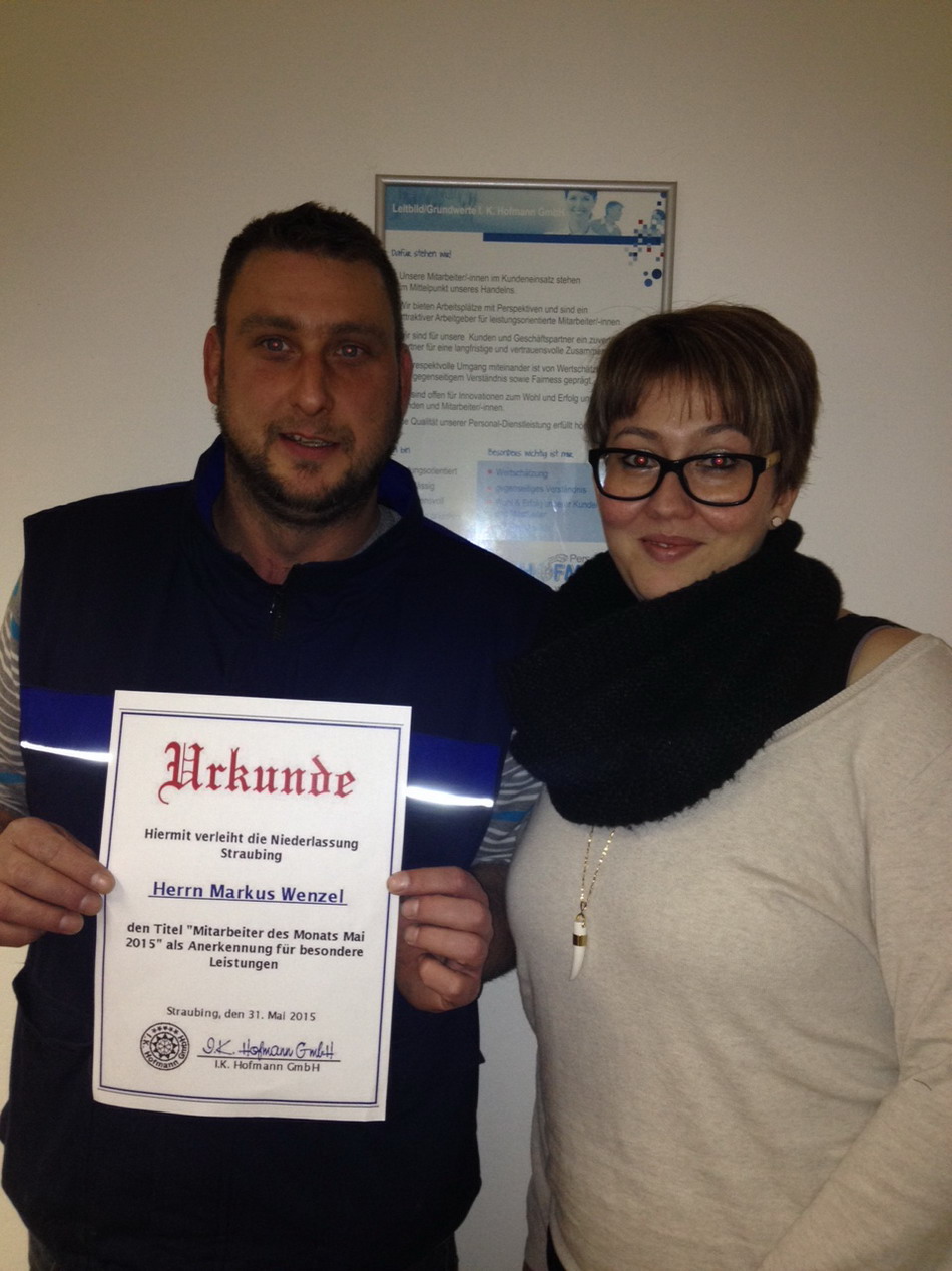 Als Anerkennung erhielt jeder Favorit eine Prämie in Höhe von 100 Euro. Marlene Meyer ergänzt: „Großes Lob kam jeweils auch von den Kunden, weil sich unsere Mitarbeiter sehr flexibel zeigten und sich problemlos in jedes Team einfügen konnten. Danke schön an Marius Cornei, Arkadiusz Kopernik, Marvin Schmid, Anton Schreiner, Viktor Sitnikov, Özer Umut und Markus Wenzel!“