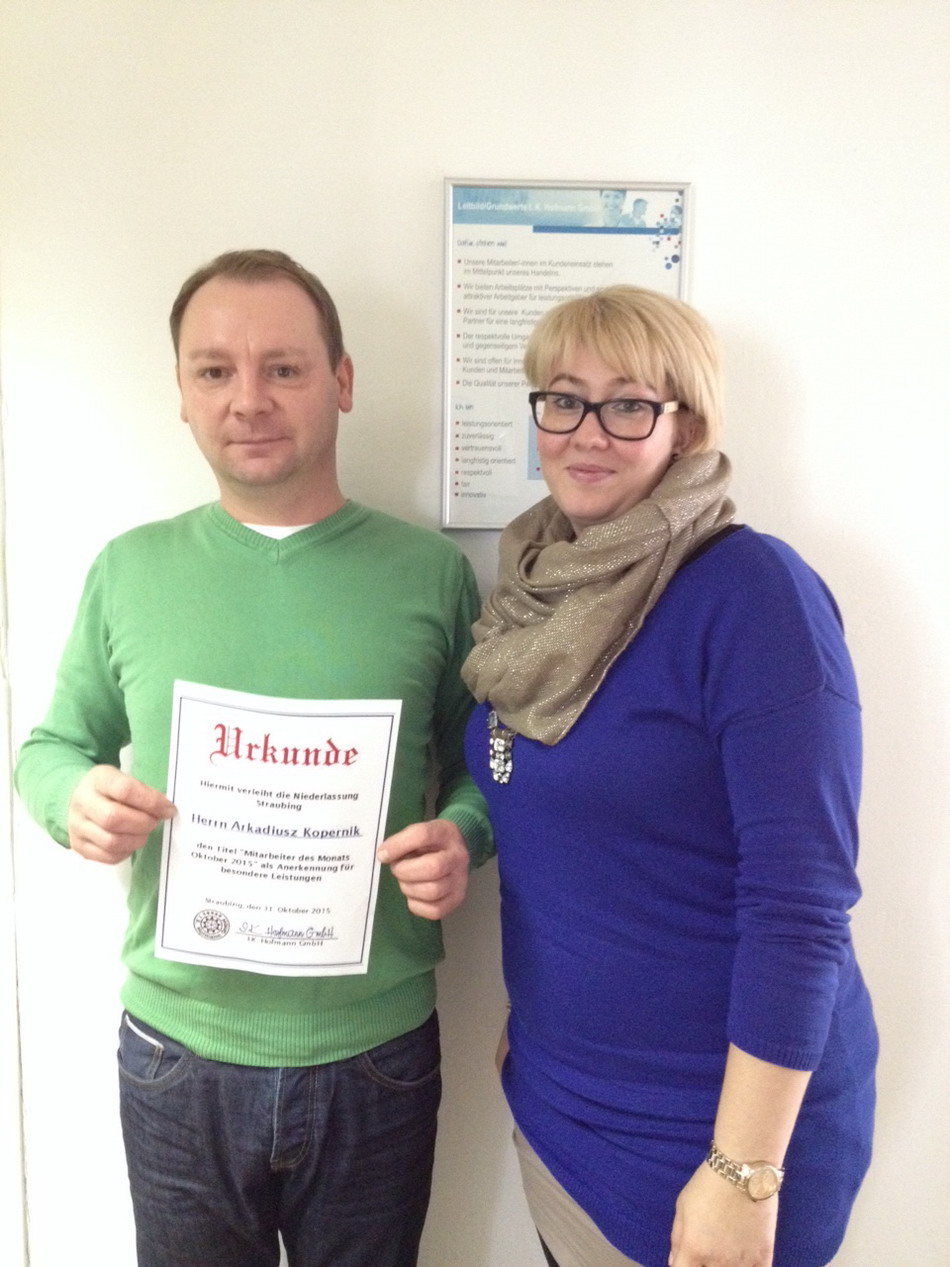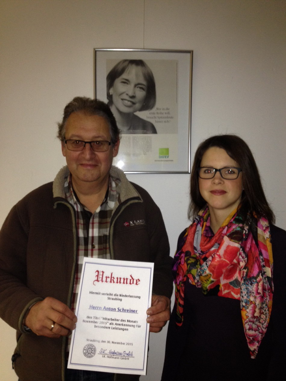Februar – Dezember 2015: „In den letzten elf Monaten konnten wir uns jeden Monat bei einem Mitarbeiter bedanken, der sich durch besondere Leistung ausgezeichnet hat. Sie machen einfach alle einen tollen Job“, erzählt Büroverantwortliche Marlene Mayer.