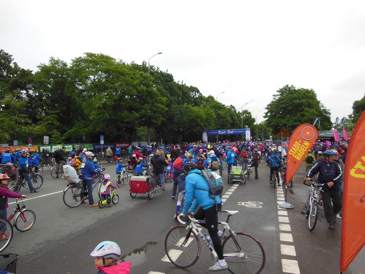 Juni 2013 – Sie radeln wieder!Hofmann-Mitarbeiter mit Kind und Kegel trafen sich Anfang Juni vor dem Völkerschlachtdenkmal, um am „LVZ-Fahrradfest“ teilzunehmen und damit den Hofmann-Spendenmarathon „anzukurbeln“.
