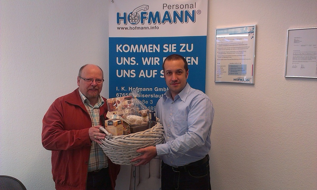 Oktober 2014 - „Wenn jemand so vorbildlich arbeitet, dann muss das einfach mal belohnt werden!“, so Niederlassungsleiter Sebastian Saipt. „Ulrich Schäfer ist 57 Jahre und in der Automobilbranche als Maschinenbediener im Einsatz. Er hat dort ausgesprochen wenig Ausschuss produziert, denn die Ware, die dort vom Band geht, wird µ-genau produziert. Er ist unglaublich zuverlässig, pünktlich und unterstützt zudem auch noch die Maschineneinrichter“, so Sebastian Saipt.