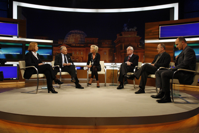 Danach ging es zur Sache. Die Zeitarbeit boomt, der Aufschwung kommt, es sind aber immer noch 4 Mio. Menschen ohne Beschäftigung – warum profitieren die Arbeitnehmer nicht wirklich von der momentanen Entwicklung? Hans-Jochen Vogel, ehemaliger SPD Parteivorsitzender verwies darauf, dass man doch bitte auch die Zeitachse im Auge behalten sollte. So schnell könne sich ein Aufschwung nicht auswirken, zumal eine nachhaltige Kontinuität sehr viel wichtiger sei. Natürlich erwarte er und wandte sich dabei zu Klaus Franz, Betriebsratschef von Opel, dass die nächsten Tarifverhandlungen die positive Entwicklung mit einbeziehen würden.