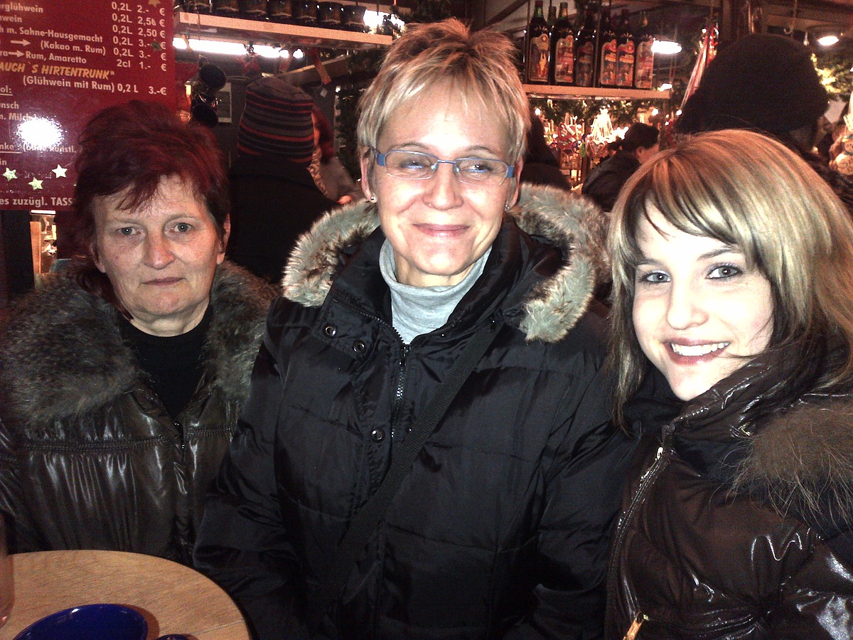 Der Schweinfurter Weihnachtsmarkt ist ein schöner Ort, an dem sich Mitarbeiter und Kollegen in ungezwungener Atmosphäre treffen und gemeinsam das vergangene Jahr mit Glühwein und Kinderpunsch ausklingen lassen können. Am vereinbarten Treffpunkt erhielten alle Gäste ihr blaues Armbändchen, mit dem sie sich kostenlos am Bratwurst- oder Glühweinstand stärken oder ihre Kinder mit Popcorn und Mandelbrot versorgen konnten. Auch die Lebkuchenherzen fanden reißenden Absatz.