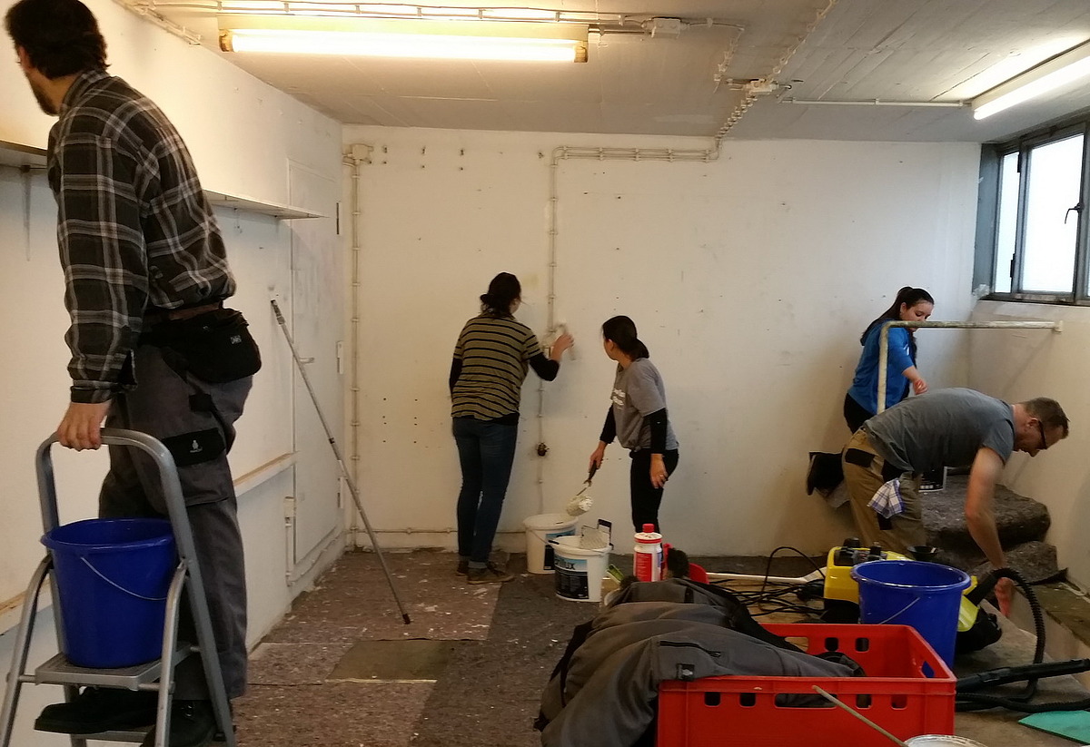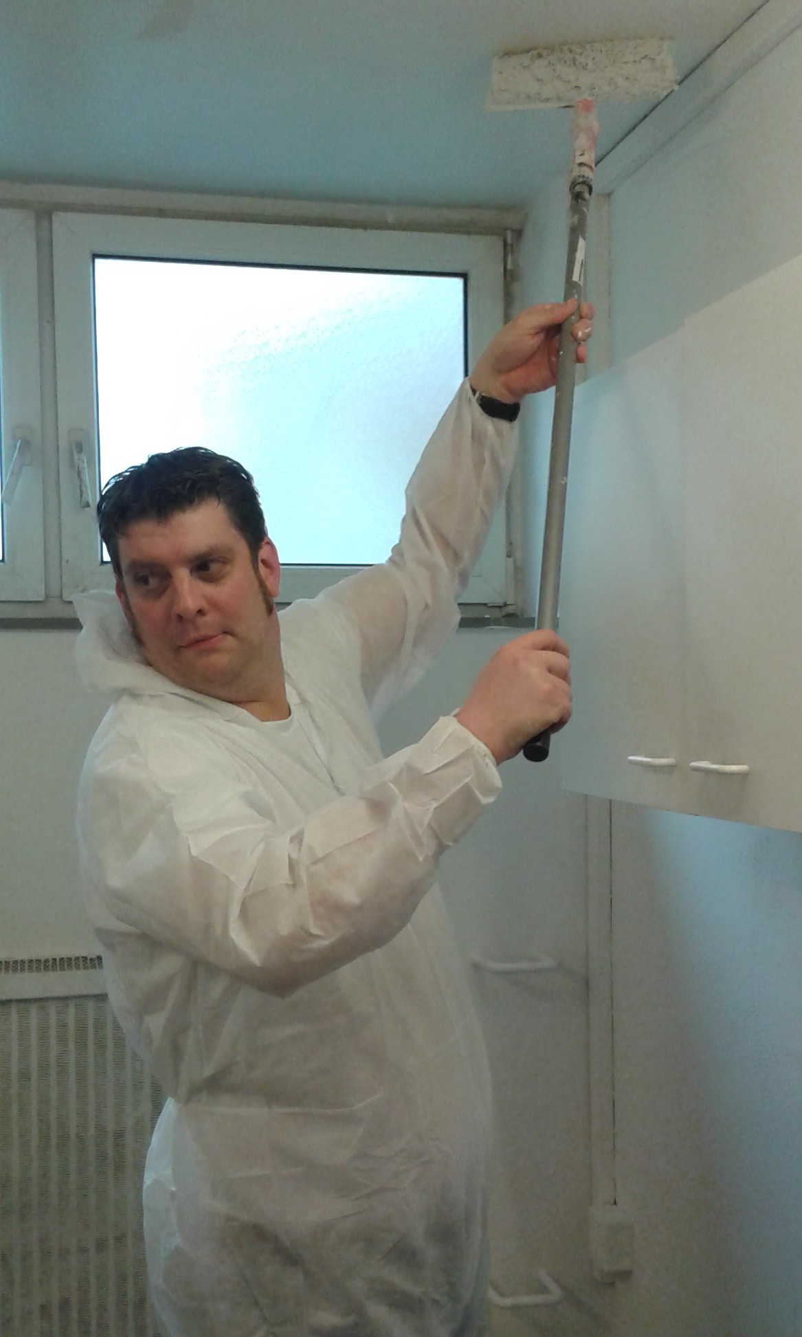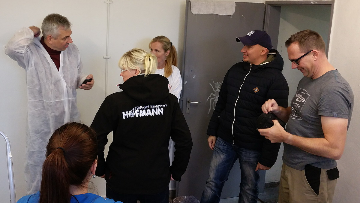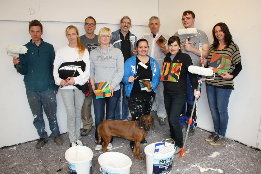 Oktober 2015 – „Gelebtes soziales Engagement, würde ich das nennen“, lacht Daniel Schramm, Leiter der I. K. Hofmann Projektmanagement GmbH (HPM) und freut sich darüber, dass das Atelier nach der Renovierung wieder aussieht wie neu. „Im Rahmen unserer Stadtteilpatenschaft für Nürnberg Langwasser betreuen wir das Sozialprojekt „Chroma Omada“, das Menschen mit Behinderung in ihrem künstlerischen Können unterstützt. Nun war es an der Zeit, die Räume zu renovieren, was mein Team gemeinsam aktiv umgesetzt hat. Wir hatten viel Spaß dabei und haben beim Auf- und Umräumen auch noch manch bemerkenswertes Bild entdeckt. “