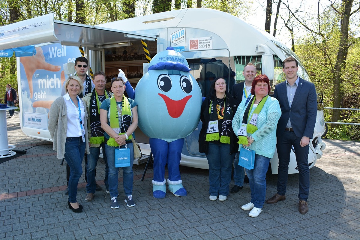 Ein weiteres Highlight des Tages war sicherlich der Auftritt des Hofmann-Maskottchens „Jobby“ zusammen mit „Richie“ von medi Bayreuth und „Wash B!“ vom Ligasponsor BEKO, die mit ihrer Macarena-Tanzeinlage in einer Spielpause den Zuschauern die Wartezeit verkürzten.