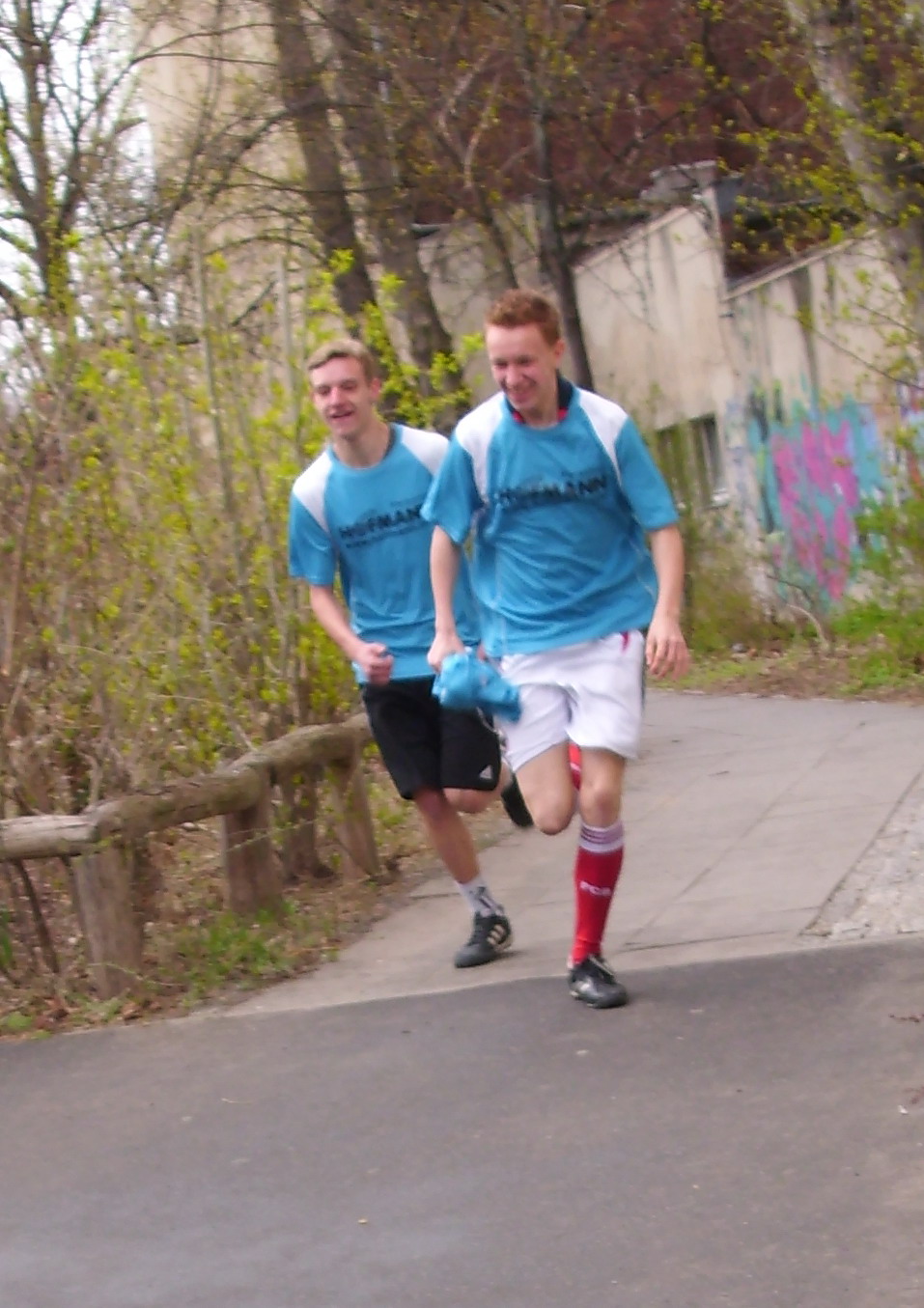 Selbstverständlich waren zwei Mitarbeiter der Berliner Niederlassung ebenfalls bei dem Marathon vor Ort. Auch wenn es nicht der perfekte Tag für einen langen Lauf über das Gelände der Schule zu sein schien, waren beide – Jessica Mewis und Ingo Rosenthal – hin- und mitgerissen von dem Engagement der dreizehn Schüler. Kurzentschlossen zogen auch sie die Jogginghosen, Laufschuhe und T-Shirts an und liefen – mehr oder weniger sportlich – ihre Runden. Natürlich war es ein wenig deprimierend, immer wieder von dem einen oder anderen Runde für Runde überholt zu werden – doch das Wissen um den guten Zweck und das Training für den Körper hinterließen bei allen Teilnehmern ein grandioses Gefühl der Begeisterung.