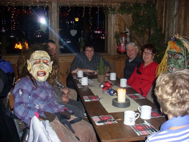 Danach ging es in die „gute Stube“, wo Niederlassungsleiterin Alexandra Bencinic Mitarbeiter und Kollegen begrüßte. Plötzlich flog die Tür auf und unheimliche Gestalten füllten den Raum. Schaurige, verzerrte Gesichter starrten die Gäste an. Die Hexen hielten Einzug! Unterwegs, um in den Raunächten ihr Unwesen zu treiben, hatten sie auch vor dem „Stadl“ in Cham nicht haltgemacht, um die Anwesenden das Fürchten zu lehren.