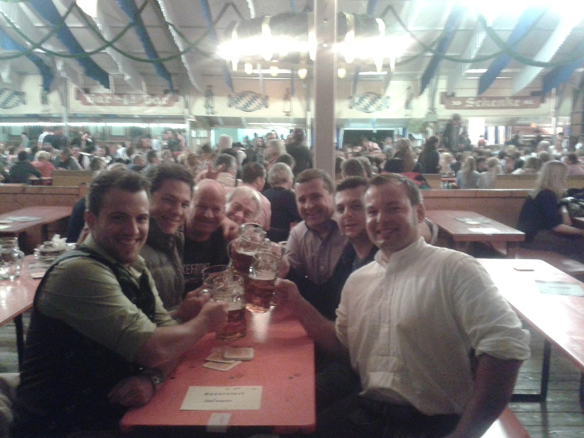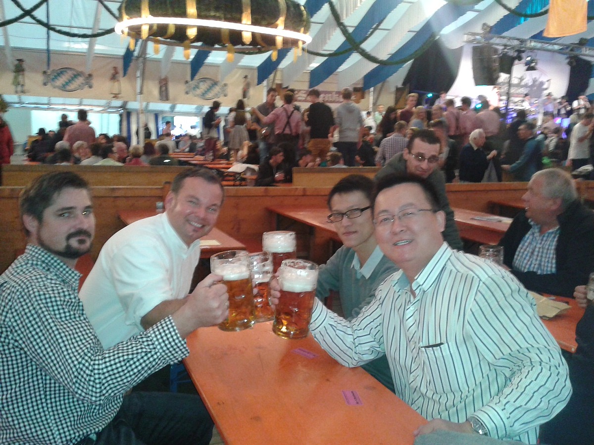 Oktober 2013 – Wie gut, dass es zünftige Volksfeste gibt. So konnten sich die Kollegen der Niederlassung Ingolstadt mit einem launigen Abend bei ihren Kunden für die ausgezeichnete Zusammenarbeit bedanken. Zur großen Freude gab es viele Zusagen, sodass die reservierten Tische voll besetzt waren. Und dann konnte es auch schon losgehen: Bei Hendl, Brezn‘ und der einen oder anderen frischgezapften Maß wurde das Dankeschön gebührend gefeiert. Musikalische Volksfest-Klassiker wie „Das rote Pferd“ sorgten dafür, dass irgendwann die Gäste auf den Bierbänken standen und sich von der tollen Atmosphäre mitreißen ließen.