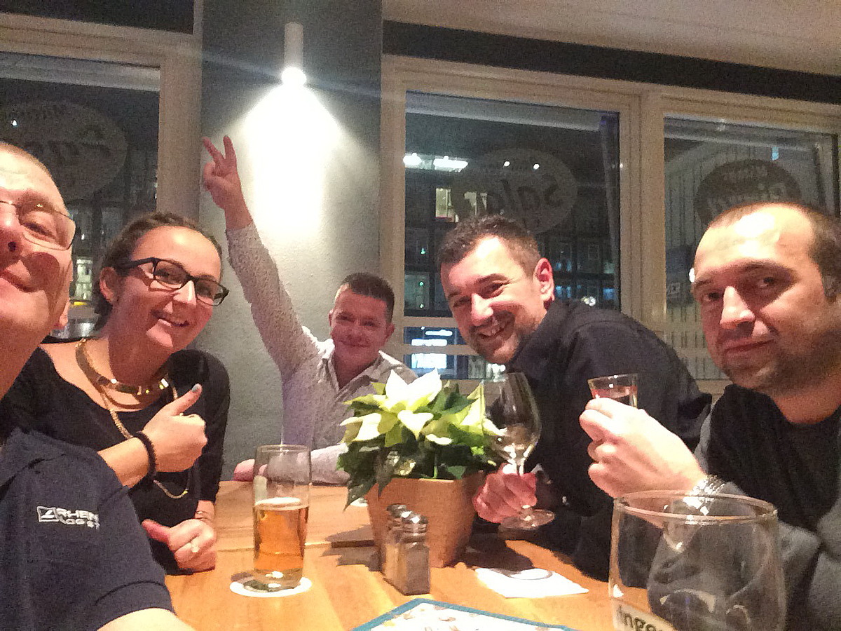 Dezember 2015 – Man traf sich im Gecko, wo alle Mitarbeiter gemeinsam aßen, ein wenig tranken und bis spät in die Nacht hinein feierten. Hierbei fanden viele interessante und angeregte Gespräche statt. Ein kleines Geschenk gab es natürlich auch.